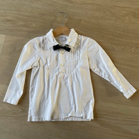 Hyväkuntoinen musta lasten h&m merkkinen puku ja valkoinen kauluspaita, koko 98cm.