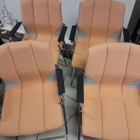 Martelan laadukkaat ja jämäkät asiakas-/julkitilatuolit 4 kpl (käytetty). Ehjiä mutta pientä kulumaa käsinojissa