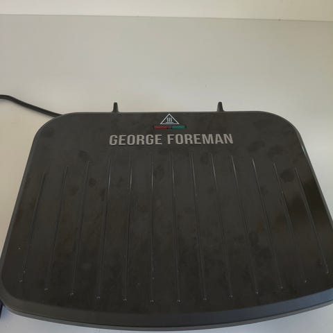 Legendaarisen nyrkkeilijä George Foremanin lanseeraama pöytägrilli. Mukana parilat, paistomittari ja vuoka. Voi tehdä kaikenlaista hampurilaisesta lasagneen