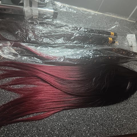 Kalven lainekuidut letittämällä kiinnitykseen taikka lettien tekoon. 400g hiusta. 60cm pituus avattuna 1,20m. Uudet, käyttämättömät.