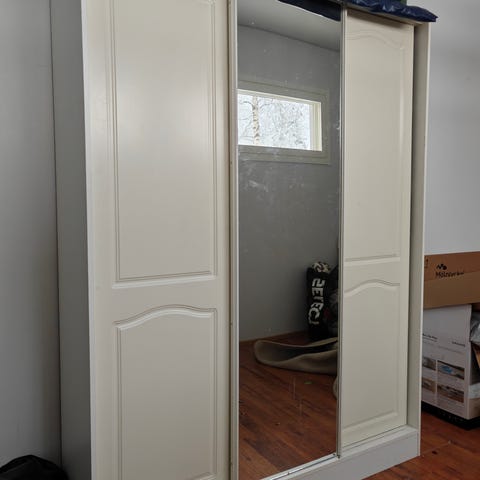 Toinen kappaletta riipputangolla ja toinen hyllyillä. Itse purettava