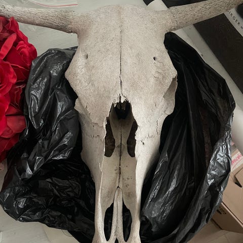 Ei vähimmäishintaa - Musta kaiverrettu naudan pääkallo, jossa boheemisti