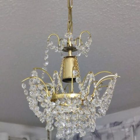 Läpimitaltaan reilu 30cm pyöreä kristallikruunu joka luo hienon tunnelman koko huoneeseen valon taittuessa kristalleista luoden kauniin valo/varjo efektin kattoon ja seinille. Yksi lampuista on palanut. Haettavissa Helsingin Marjaniemestä 16.2. lähtien. Maksu käteisellä.