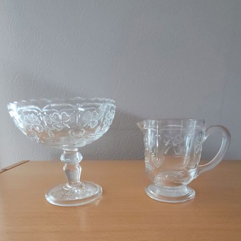Aino Aallon suunnittelema sokerikko ja kermakko. Vanhaa Iittalan tuotantoa. Pohjat ovat hiotut.