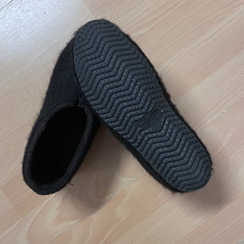 Kotimaiset toffeli huopakengät timantilla, koko 39.5, leveä lesti. Itselle harmikseni liian isot. Sisäpohjallisen pituus 25cm.