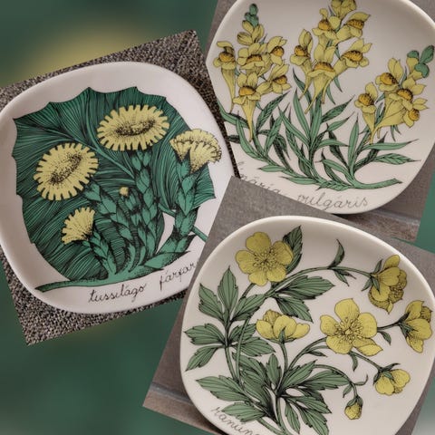 Tomulan Botanica keräilylautanen keräilytaulu kukkataulu marjataulu luonnonkukat horsma kurjenpolvi