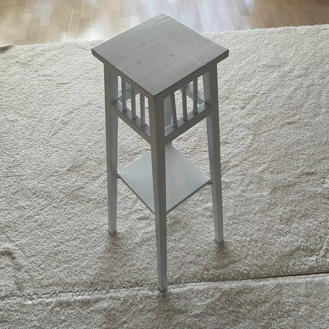 2 kpl kukkapöytiä, materiaali melamiinilevy ja rottinki. Kunnossa ei huomautettavaa.