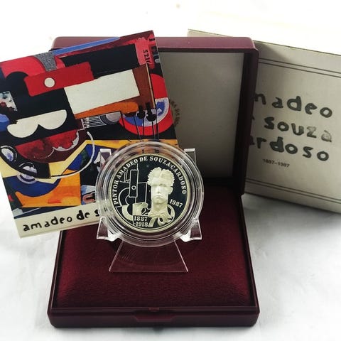 Portugali. Silver Proof 100 Escudoa 350 vuotta Portugalin itsenäisyyden palauttaminen (18,5g)- 100 escudoa (Itsenäisyyden palauttaminen; hopeaa)ND (1990)Ei-kiertokolikko: Järjestelmä 1981-2001 – Portugalin itsenäisyyden palauttamisen 350. vuosipäiväHopea (.925) • 18,5 g • ⌀ 33 mmKM#651a, Gomes#R86.02, N#72222Takuutodistuksen kanssa