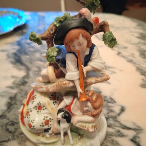 Hieno pitsiposliini figuuri joutsenlampi teema.