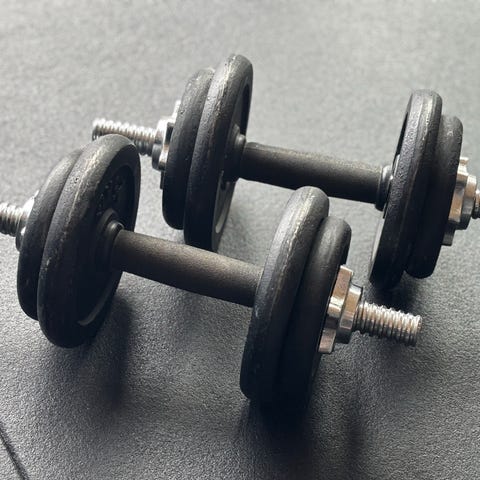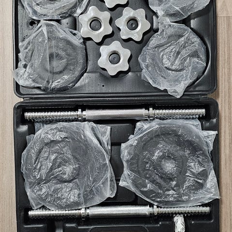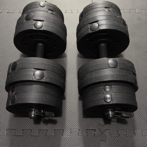 Gymstick käsipainosarja, jossa säädettävä painomäärä vaihdettavien levypainojen avulla. Sarjaan kuuluu käsipainotanko kierrelukituksilla sekä useita mustia levypainoja: 2x 0,5kg, 2x 1,5kg ja 2x 2,5kg.