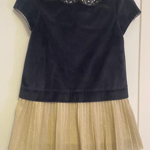 Mayoral tummansininen / yönsininen neulemekko tytöille, koko 92 koko on reilu ja meillä käytetty myös koossa 98. Joustava ja pehmeä puuvillamekko, jossa rusetti yksityiskohdat sekä kuvioneulosta/ pitsineulosta. Sopii arki- ja juhlakäyttöön lapselle, jonka pituus on noin 86-98 cm. Kunto erinomainen, pinta kaipaa teippirullalla käsittelyn niin pienet karvanpätkät saa pois.