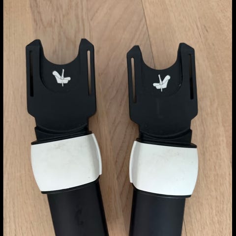 Adapterit turvakaukalolle Bugaboo vaunuihin. Adapterit kiinnitetään vaunujen runkoon, jotta yhteensopiva turvakaukalo voidaan asentaa rattaisiin. Käytetty Bugaboo Fox -rattaiden ja Cybex-turvakaukalon kanssa