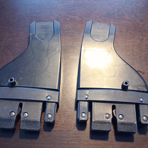 Turvakaukalon adapterit Emmaljungan rattaisiin. Turvakaukalona meillä ollut Maxi-cosi, sopii lisäksi ainakin Cybex -turvakaukaloihin.