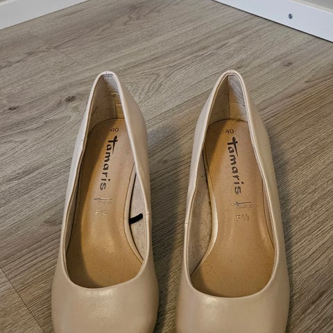 Tamaris korkokengät, koko 40. Väri musta. Mallissa on avoin kanta ja säädettävä remmi soljella. Kengissä on leveähkö, matalahko korko, joka tuo hieman korkeutta. Päällinen on sileäpintainen ja pohjassa on kuviointi pidon parantamiseksi. Sopivat esimerkiksi arki- ja juhlakäyttöön.