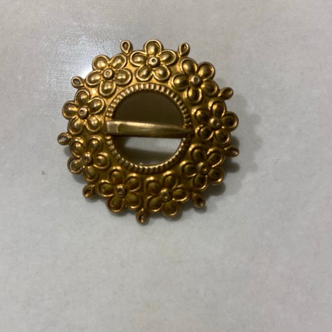 Kalevala Korun pronssinen huivinkiinnitin/huivisolki. Korkeus n. 4cm, levein kohta n. 3,5cm. Nouto/postitus.