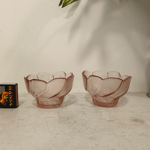 Kaksi kpl Riihimäen lasin Ulpukka (1985) kynttilälyhtyä/kulhoa.