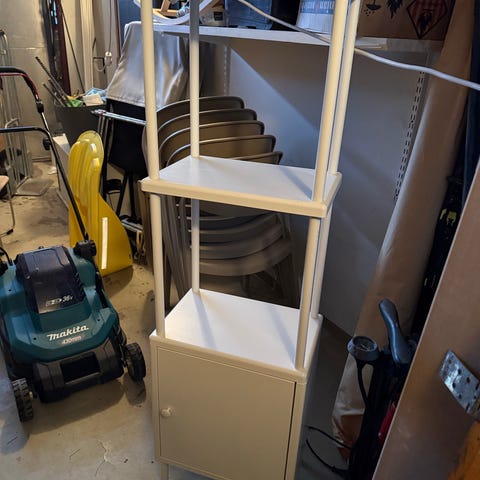 🩶 Materiaali on muovia. Takana on kiinnitysreiät seinään asennusta varten. Soveltuu eteiseen tai muuhun tilaan kenkien ja pientarvikkeiden säilytykseen.
