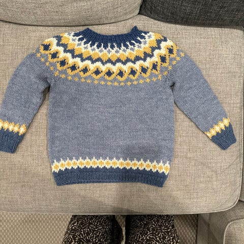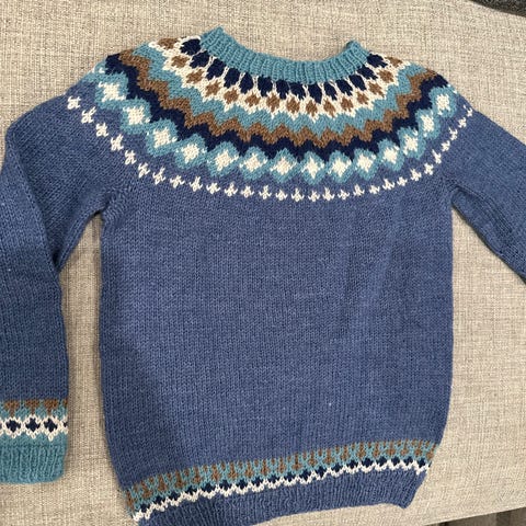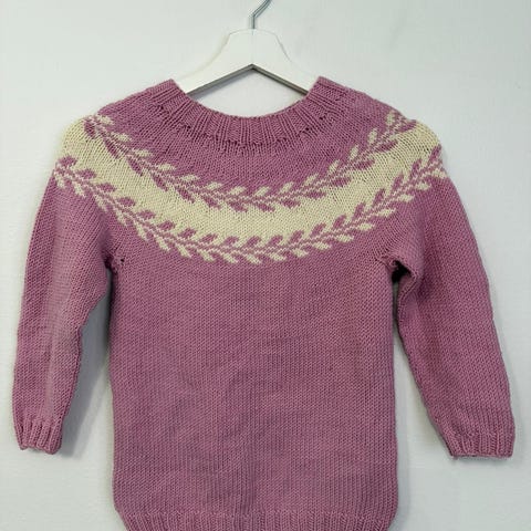 Käsinkudottu kaarrokepusero, tehty pehmeästä langasta, ei kutita. Sopii 4- vuotiaalle. Mitat: kai- kai 35 cm, olka- helma 37 cm ja kainalo- hihansuu 26 cm.
