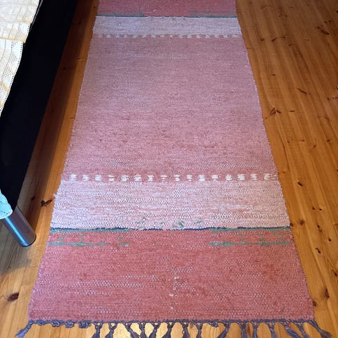 Itse kudottu matto, suoraan käytöstä.