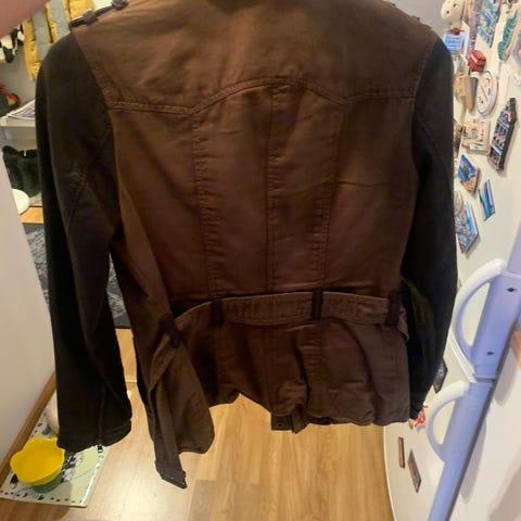 Takki on useamman vuoden vanha, mutta sitä on käytetty pesulassa, joka vuosi ja niin kuin kuvissa näkyy takki on päältäpäin hyvässä kunnossa mutta tarkasteltuna siinä huomaa kulumaa esim saumoissa, mikä on näille takeille yleistä. Koko on naisten M mutta sopii hyvin myös S-M kokoiselle miehelle.