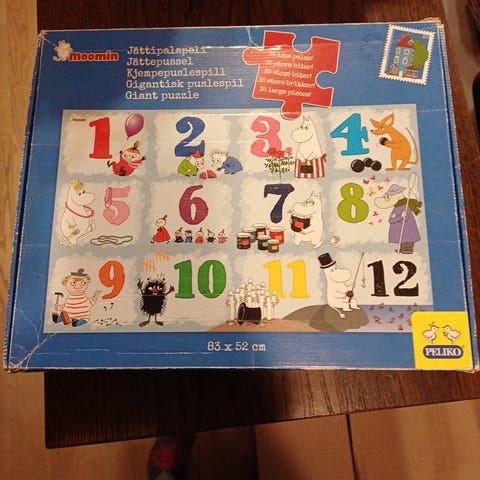 Moomin 1000 palan palapeli, jossa kuvassa Muumi-hahmoja kukkaniityllä. Valmiin palapelin koko on 68 x 48 cm. Sopii ajanvietteeksi ja kokoiltavaksi esimerkiksi pöydälle tai palapelialustalle.