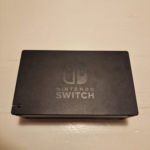 Nintendo Switch Docking Station. Nintendon virallinen telakka Switch 1:lle, mukana virta- ja HDMI-kaapeli. Hyvä hankinta mikäli kotona monta TV:eetä etkä jaksa koko ajan telakkaa roudata paikasta toiseen. Uutena noin 100 euroa.