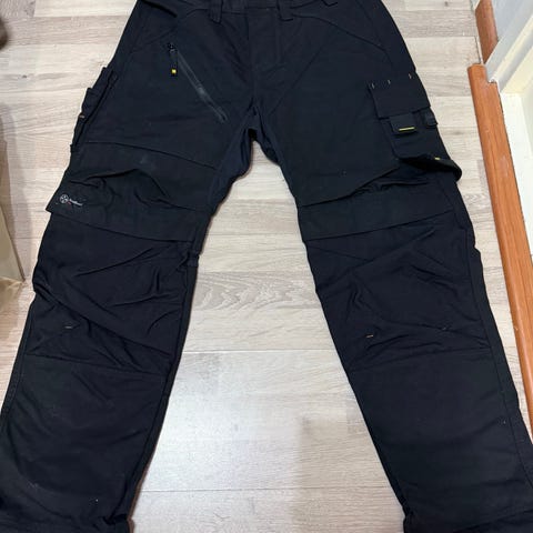 Hengittävä stretch-kangas ja esitaivutetut lahkeet. KneeGuard™-polvisuojajärjestelmä ja joustokangas polvien yläpuolella. Kestävät Cordura®-vahvikkeet polvien kohdalla, lahkeensuissa, taskuissa sekä riipputaskuissa. Helppopääsyiset riipputaskut, joissa vetoketjullisia lisätaskuja, reisitaskut, puukkokotelon nappi, tasku puhelimelle ja irrotettava henkilökorttitasku. Irrotettava, kestävä vyö, jossa solki polyamidia. Huomiokangas 100 % ripstop-polyesteriä, joustokangas 88 % Corduraa, 12 % elastaania. Vahvike 100 % Cordura-polyamidia.