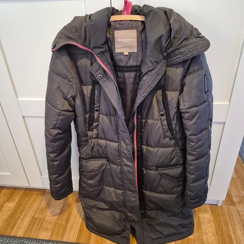 Ihan ok kunnossa oleva takki, täyte vähän kärsinyt pesuissa, joten voi olla hieman siirtynyt eri kohtiin. Siitä huolimatta takki kyllä lämmittää edelleen.