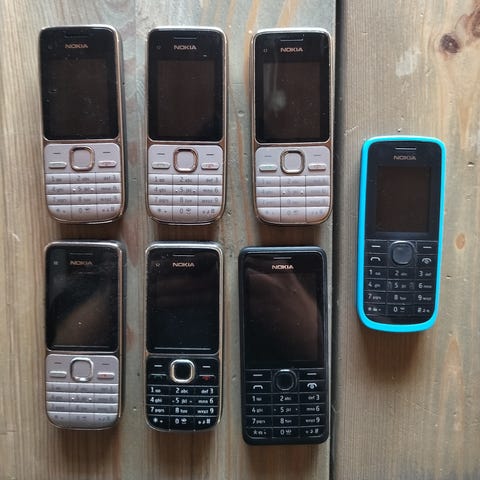 Vanhoja kännyköitä ja latureita