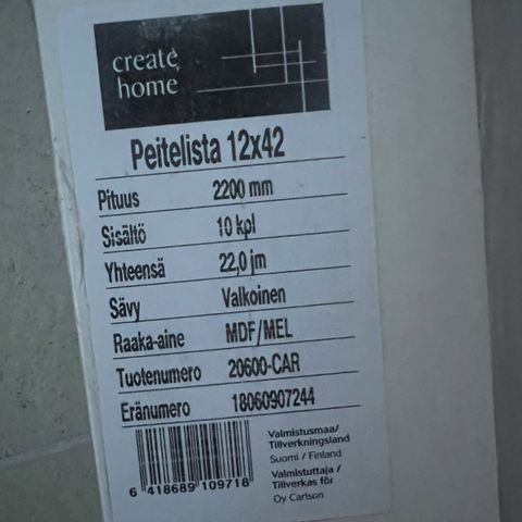 Myydään uutta paketissa olevaa Malerin jalkalistaa, jossa johtoura. Listan mitat 12x42x2750, ja näitä yhteensä 16 kpl. Nyt halvalla listoja tarjolla.