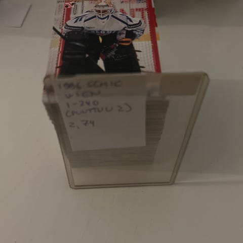 Kaksi korttia, Curt Larsson ja Frantisek Panchartek. Ovat olleet liimattuna, mutta ihan hyviä uudelleen liimaukseen.