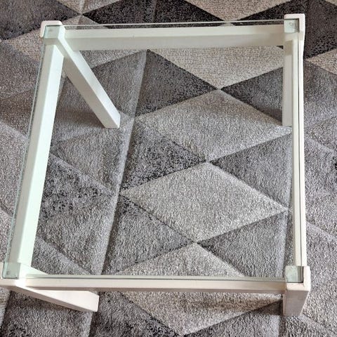 Sohvapöytä, jossa suorakulmainen lasikansi ja puunvärinen runko. Pöydässä on alataso esimerkiksi lehtien tai muiden pientavaroiden säilytykseen. Sopii olohuoneen sohvapöydäksi tai pientavarapöydäksi.