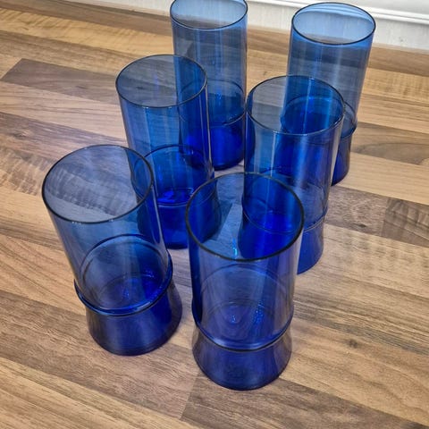 Neljä kappaletta samppanja/kuohuviinilasia. Suunnitellut Einari kumela. Valmistettu 1960-luvulla. Käyttämättömät ja virheettömät lasit.