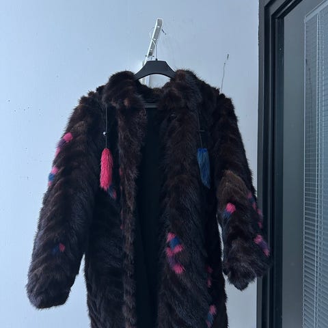 Kokopitkä ruskea naisten minkkiturkki. Koko 40-42. Toimitus mahdollinen pk-seudulla.