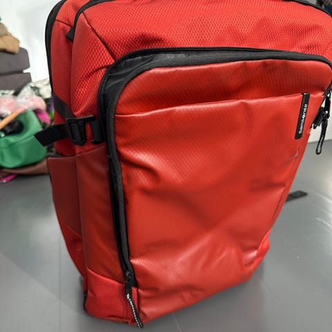 Vain kerran käytössä ollut, eli hyvin pitkälti uuden veroinen. Paljon taskuja. Hyvä myös lentokoneeseen penkin alle.