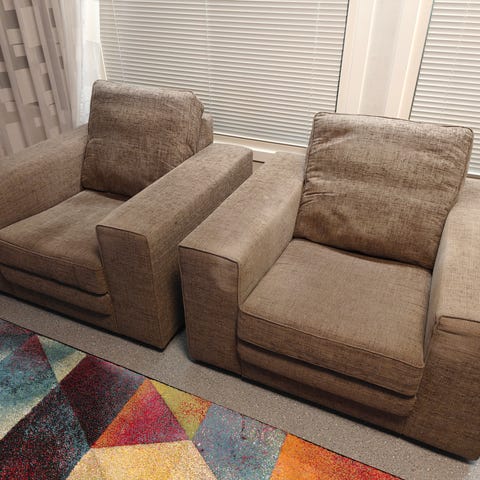 2 nojatuolia ja rahi