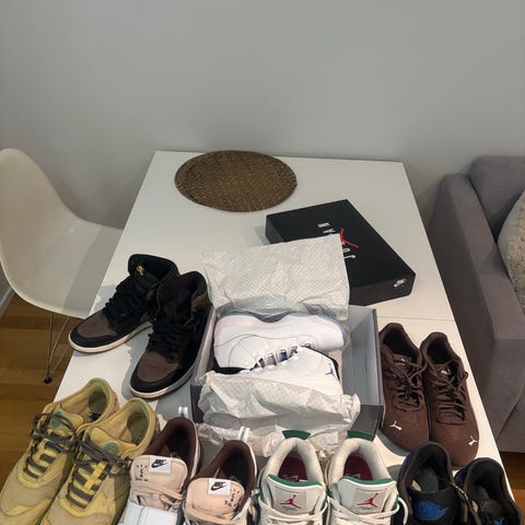 Nike travis jordanit, koko 43. Väri musta. Päällinen ja pohja kuvien mukaiset. Sopivat arkikäyttöön ja vapaa-aikaan. Käytön jälkiä on mutta pikku putsauksella kuin uudet