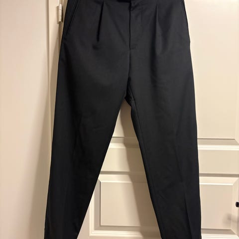 Siistit mustat Hugo Boss suorat housut, koko 52. Materiaali 100% neitsytvillaa (Virgin Wool).
