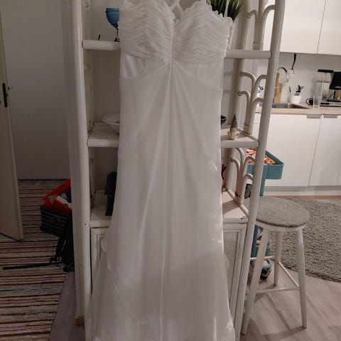 Kaunis, klassinen häämekko S/M kokoiselle. Kevyt ja mukava päällä. Pesty. Kerran käytetty muutaman tunnin. Upeat leikkaukset.