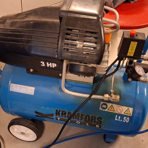 Paineensäädin rikki, tehty pulttipatentti ja pystyy kyllä käyttämään ulkoisella paineensäätimellä joka kuvassa näkyy (alkuperäiset säätimen osat löytyy mukaan jos haluaa tutkia, sekä kompressorikeskukselta varmasti saisi vielä uusia osiakin)