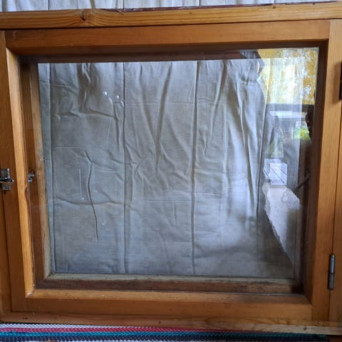Myydään kaksilasinen ruskea käytetty ikkuna. Koko 6x9