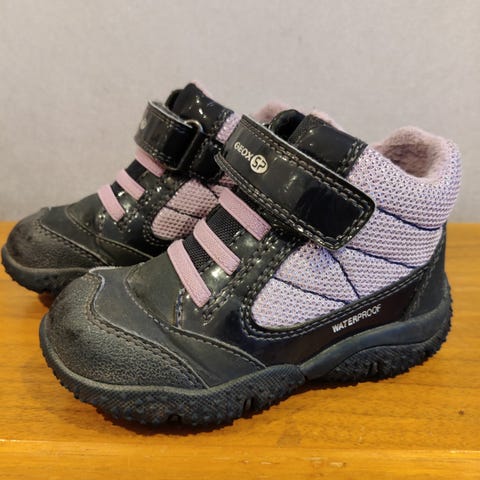 Yhden syksyn ajan käytössä olleet geox-lenkkarit. Pientä kulumaa kärjessä lukuunottamatta ei juurikaan käytön jälkiä. Sisäpinta nahkaa. Hengittävät. Pohjia puhdistettu kevyesti pyyhkien. Sisämitta n. 13cm.