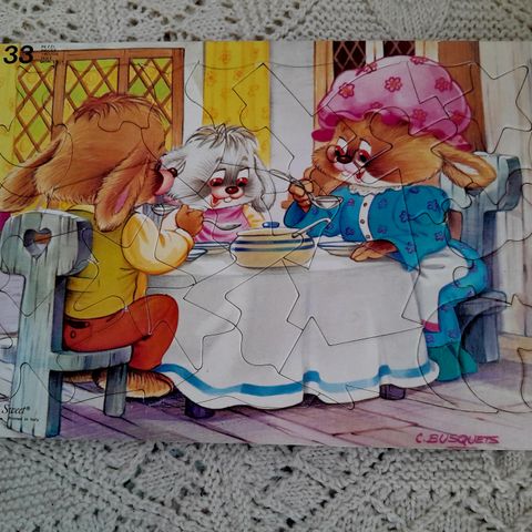80 palaa ja kaikki tallella. Alkuperäinen rasia, joka on ajan saatossa hieman painahtanut ja etukannessa pieni nirhauma. Itse palapeli kaikinpuolin moitteettomassa kunnossa.