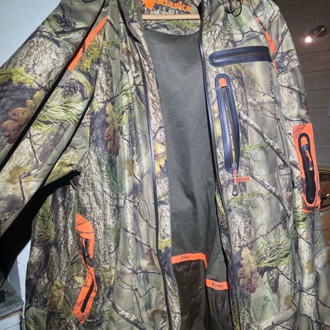 Käyttämätön Riista Äly-tex metsästysasu, johon kuuluu takki ja housut henkseleillä, molemmat kokoa M. Kahisematon ja luja pintakangas. Takissa ja housuissa vetoketjulliset tuuletusaukot, takissa kainaloiden alla ja housussa vyötärön alla sivutaskuksi naamioituna. Metsänvihreä väri, suojaava kaulus, sisäkaulus fleeceä, kauluksessa ja