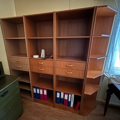Teipinpalat pitävät lasia kun olevinaan ollut vuosia niin kiire ettei kerkiä liimaan kiinni. Muutoin täysin ehjä hylly. Paljon muuttotavaraa tulossa