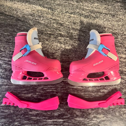 Bauer Lil' Champ -lasten luistimet, koko EU 26/27. Väri sininen, puna-valkoisella sisävuorella. Muovikuorinen malli, jossa säädettävät soljet jalan tukemiseen. Soveltuvat lasten luisteluun esimerkiksi jääkentillä ja luistelukouluissa. Koko ilmoitettu valmistajan merkinnän mukaan.