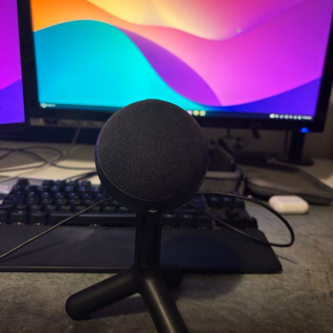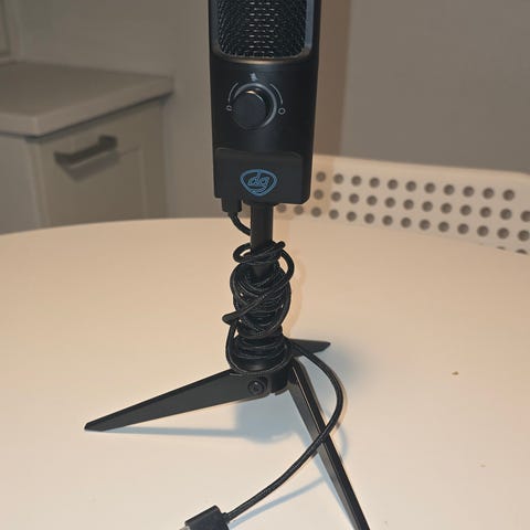 USB-pöytämikrofoni, jossa tulee säädettävä joustava varsi kiinnitysmekanismilla. Mikrofonissa on kaksi etupaneelin
