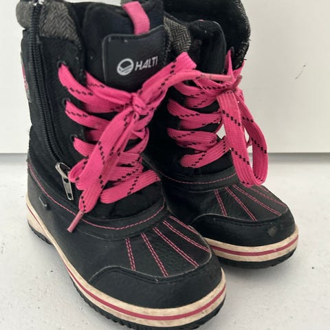 Haltin lämpivuorelliset talvisaappaat / loskarit. Helppo pukea jalkaan lisävetoketjun vuoksi. 5e