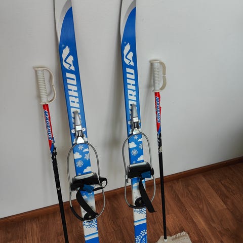 Edsbyn Snow Star lasten sukset ja sauvat. Lyhyet laskettelusukset, joissa siteet ja mukana yhteensopivat sauvat. Soveltuvat lapselle talviseen ulkoiluun ja laskettelun harjoitteluun.