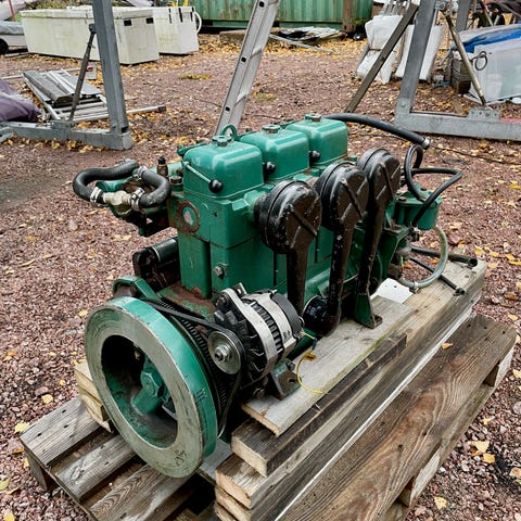 Moottori ja Peävetolaite , moottori marinoitu BOWAN PE390 lämmönvaihdin ja JABSCO merivesipumppu. Moottorissa adapteri Volvo Pentan perävetolaitteelle . Perävetolaitteen välitys suhde 1:1,61 ja kolmella potkurilla 16" 15" ja 14". Moottorin voi ostaa myös erikseen ja perävetolaiteen. Moottori ja perävetolaite 2000€ , Moottori pelkästään 1500€ ja peävetolaite 1000€. Moottorilla tunteja 1100h.